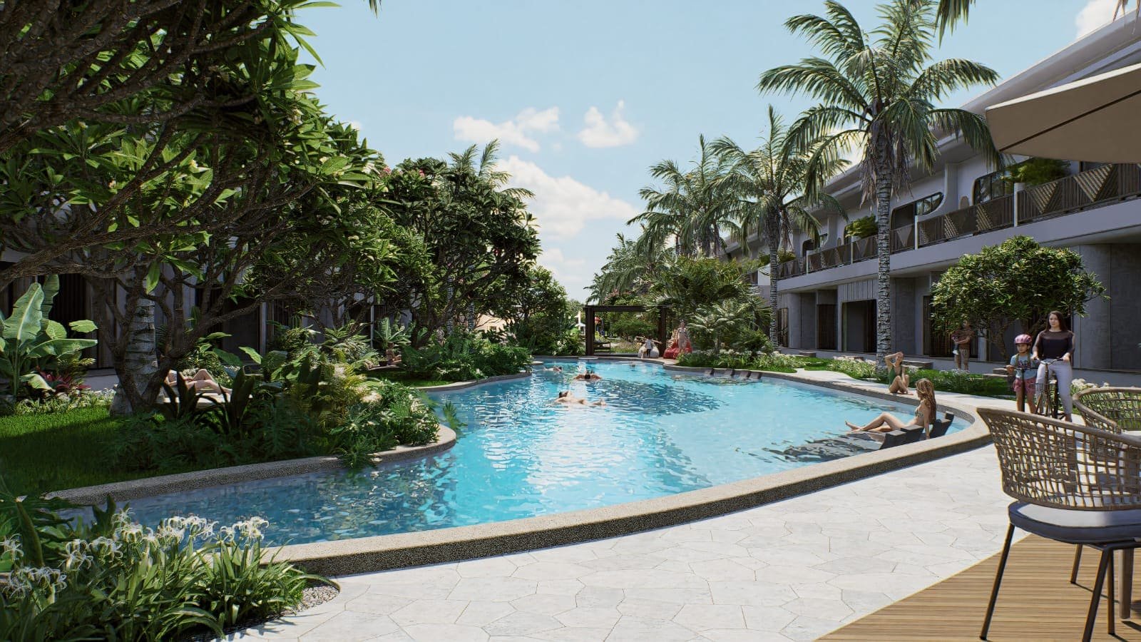 De Auraya Villas menghadirkan konsep dua lantai dengan luas bangunan 152 m², menjadikannya unit terluas di kelasnya. Setiap unit sudah full furnish dan memiliki pool access pribadi, memadukan desain modern, material premium, serta pengelolaan profesional. Semua ini menjadikan De Auraya Villas pilihan investasi berkelas dengan nilai yang terus meningkat.